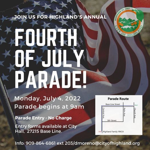 The San Bernardino County Sheriff’s Recruitment Unit will be in attendance. Parade begins at 9:00am…parade route will travel west on Base Line from Palm Avenue, south on Central Avenue, east on Hibiscus Street and end at the Highland Family YMCA.