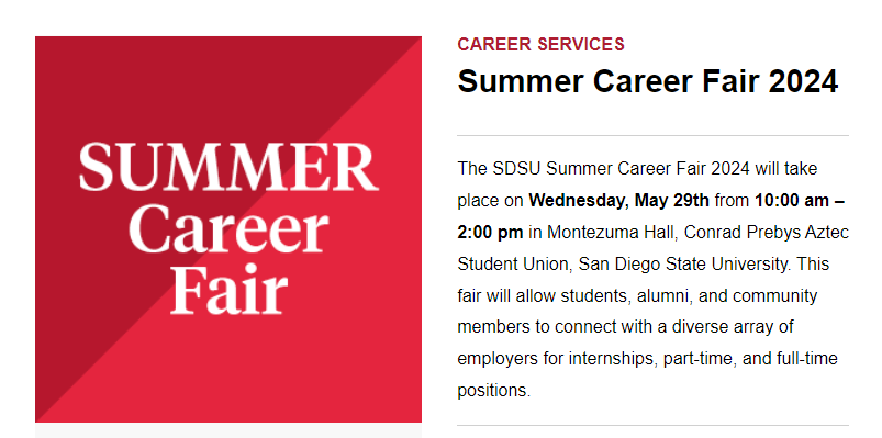 San Diego State Univ. Summer Career Fair